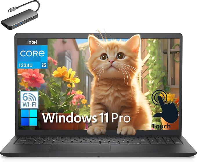 - The Dell Inspiron 15 boasts a 15.6-inch Touchscreen FHD (1920 x 1080) Anti-Glare LED Backlight Narrow Border WVA Display for sharp visuals and vibrant colors. The slim, sleek design in vibrant black offers a stylish, lightweight laptop for immersive viewing; Graphics: Intel Iris Xe Graphics.